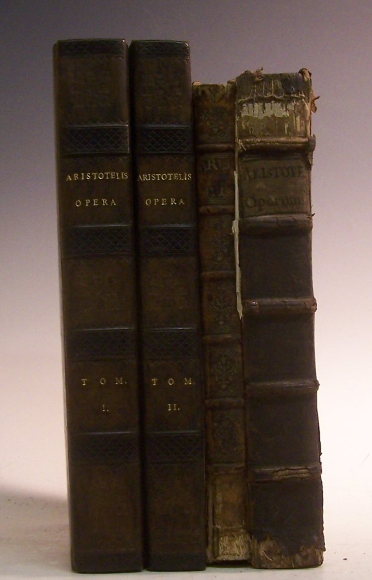 Operum … adiecta est vita Aristotelis … ac sriptis eiusdem, commentatio doctissima per Philippum Melancthonem … Basle: [n.p, Oporinus?], 1538. Volume 2 only of three volumes, with Hh4 a blank, woodcut initials, orginal roll tooled calf, rubbed and worn and lacking the lower board, , Melancthon's name scorred out on the title-page and at the head of the Life, uniform paper discolouration throughout, margins of titlepage and first few leaves a little frayed, single worm hole through first couple of signatures