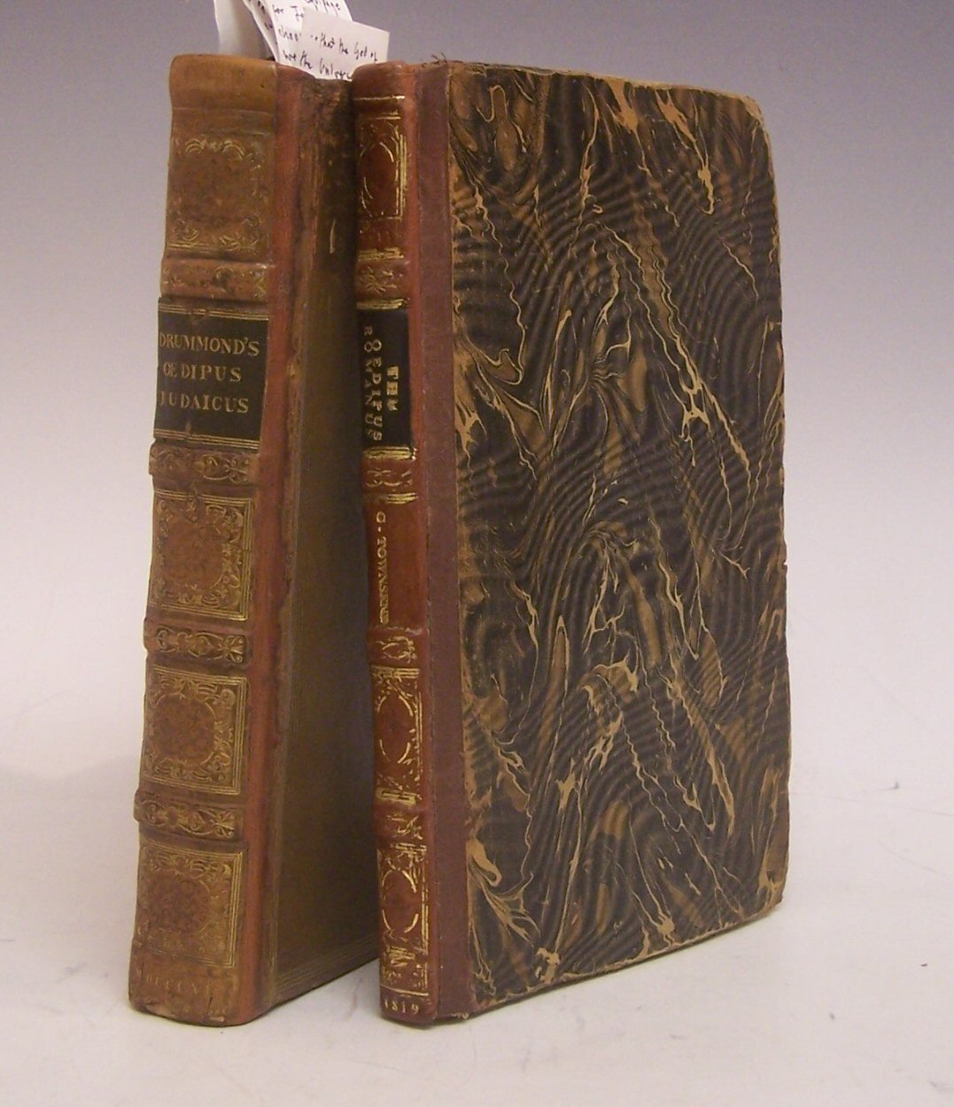 The oedipus judaicus. London, 1811, 8vo, 16 plates, contemporary calf gilt, rebacked using original backstrip, rubbed at edges, ink notes on front endpapers; Townsend, Rev G. The oedipus romanus. London, 1819, 8vo, later marble boards, rubbed, new endpapers, some foxing, ink signature on front endpaper (2)
