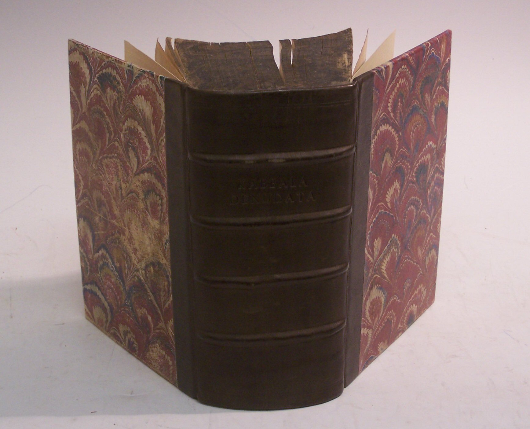 Kabbala denudata seu doctrina hebraeorum transcendentalis. Sulzbach: A. Lichtenthaler, 1677-78, parts 1-3 (of 6), 4to, edited by C. Knorr von Rosenroth, Hebrew and Latin text, engraved frontispiece (fore-margin shaved), and 16 (of 17) plates, part 3 misbound, modern calf-backed boards, raised bands