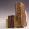 Elementa philosophica de cive. Amsterdam, 1669, 12mo, engraved title, vellum, ink notes on verso of title; Ibid. Thomae Hobbes Angli Malmesburiensis philosophi vita. Carolopoli [London], 1682, 8vo, portrait frontispiece, contemporary calf, worn, upper board loose, some offsetting to title [Wing H2268]; Ibid. Hobb's tripos, in three discourses... London, 1684, third edition, 8vo, contemporary calf, worn, label inserted, repaired and another copy in modern calf [Wing H2266]; Ibid. Elementa philospohica de cive. Lausanne, 1782, 12mo, half title, contemporary wrappers, lacking backstrip, pubic library bookplate; Ibid. The moral and political works of... London, 1750, folio, lacking portrait and engraved title, contemporary calf, rebacked, worn, upper board loose, public library bookplate (6)