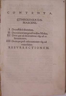 Contenta. Theologia Damasceni. I. De ineffabili divinitate. [Paris: Henricus Stephanus, 1507], 4to, imprint on colophon, early annotations on verso of colophon leaf, later boards, hinges broken, slight spotting, small dampstain in a few margins