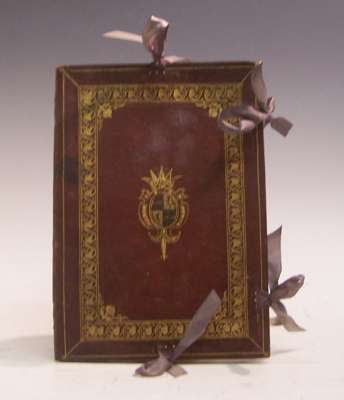 Document on vellum, signed, 1 July 1613. 12 leaves (3 blanks), 272mm by 195mm, in contemporary panelled red morocco gilt binding, gilt arms on sides, granting control of land around Monte San Sabino to the descendants of Giovanni Antonio Orsini, Latin, black ink with initials in gold, also signed by others, ties, small hole at head of first leaf