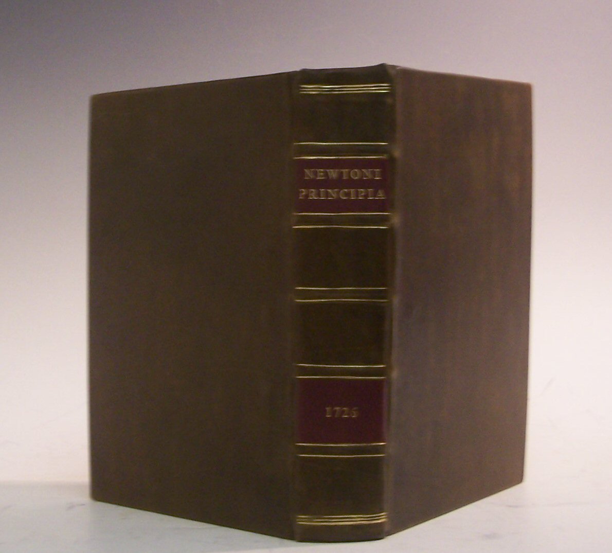 Philosophiae naturalis principia mathematica. London: G. and J. Innys, 1726, 4to, modern calf, license leaf, portrait and title supplied in facsimile, several other leaves supplied from another copy, damp-staining throughout in upper margin and extending into text from Ppp1, slight damp-staining in fore margin, a few leaves renewed in inner margin, occasional light soiling, a few marginal repairs
