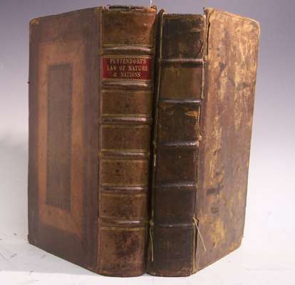 Of the law of nature and nations. London: R. Sare [&c.], 1717, third edition, 4to, contemporary calf, worn, covers detached; Ibid. Of the law of nature and nations. London: J. Walthoe [&c.], 1729, 4to, contemporary panelled calf, head of title browned, frayed and strengthened on verso, a2-3 browned at head, joints cracking, corners repaired (2)