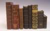Council of Trent Catechismus ex decreto Concilii Tridentini, ad parochos, ante quidem Pii V. Pont. Max. iussu conscriptus … Ingolstadt: excudebat David Sartorius, 1577. 4to., woodcut arms of Cardinal Marcus Siticus on the titlepage, woodcut intials, signature Aaa provided in Ms, contemporary blind stamped and roll tooled calf, edges rubbed, only one clasp present, titlepage with early ownership inscriptions, water staining to the margins of the first few leaves; Officia propria sanctorum ordinis minorum. Lyon: sumptibus societatis, 1675, 8vo, 2 volumes in one, printed in red and black, contemporary blind stamped and roll tooled calf, clasps; Konrad, Franz Rituale Constantiense. Coutances: A. Lambert, 1775, 4to, contemporary calf, clasps; [Breviary] Breviarum romanum... pars hiemalis. Madrid: J.J. Siguenza, 1831, 8vo, engraved plates, printed in red and black, contemporary panelled red morocco gilt, clasps; Plumans, J.B. Expositiones mysticae in libros historicos veteris testamenti. [No place], 1766, 4to, contemporary calf, spine gilt; [Breviary] Breviarium romanum... pars aestiva. Antwerp: ex architypographia Plantiniana, 1744, 12mo, engraved plates, printed in red and black, contemporary calf, g.e., worn; Molitor, Valentine Directorium seu cantus et responsoria. Monasterio S. Galli: A.J. Bell, 1692, oblong 8vo, woodcut staves, later calf, some spotting, a few small holes affecting text; [Martyrology] Martyrologii Romani Gregori III. Rome: J.M. Salvioni, 1749, 4to, contemporary red morocco, dampstained; sold not subject to return (8)