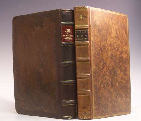 The history of philosophy. London: printed for Thomas Bassett, 1687, second edition, folio, first edition to contain all four parts in one volume, portrait frontispiece, full-lengths portraits in text, contemporary calf, rebacked, ink inscription on title of Francis Bedford, some worming [no loss to text] [Wing S5239]; Ibid The history of philosophy. London: printed for W. Battersby, 1701, third edition, folio, lacking portrait frontispiece, portraits in text, late 18th Century tree calf gilt, rebacked, some foxing and browning (2)