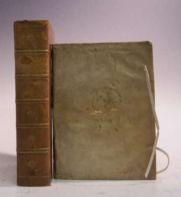 Traitez de Maxime de Tyr, philosophe platonicien. Rouen: Jean Osmont, 1617, 4to, woodcut device on title, woodcut initials and ornaments, contemporary vellum, new front endpaper, new ties; Dissertationes, ex recensione Johannis Davisii. London: G. Bowyer, 1740, 4to, Greek and Latin text, engraving on title, contemporary russia gilt, bookplate of Henry David Forbes of Balgownie, slightly rubbed, short split at foot of upper joint, some lower corners very slightly damp-stained (2)