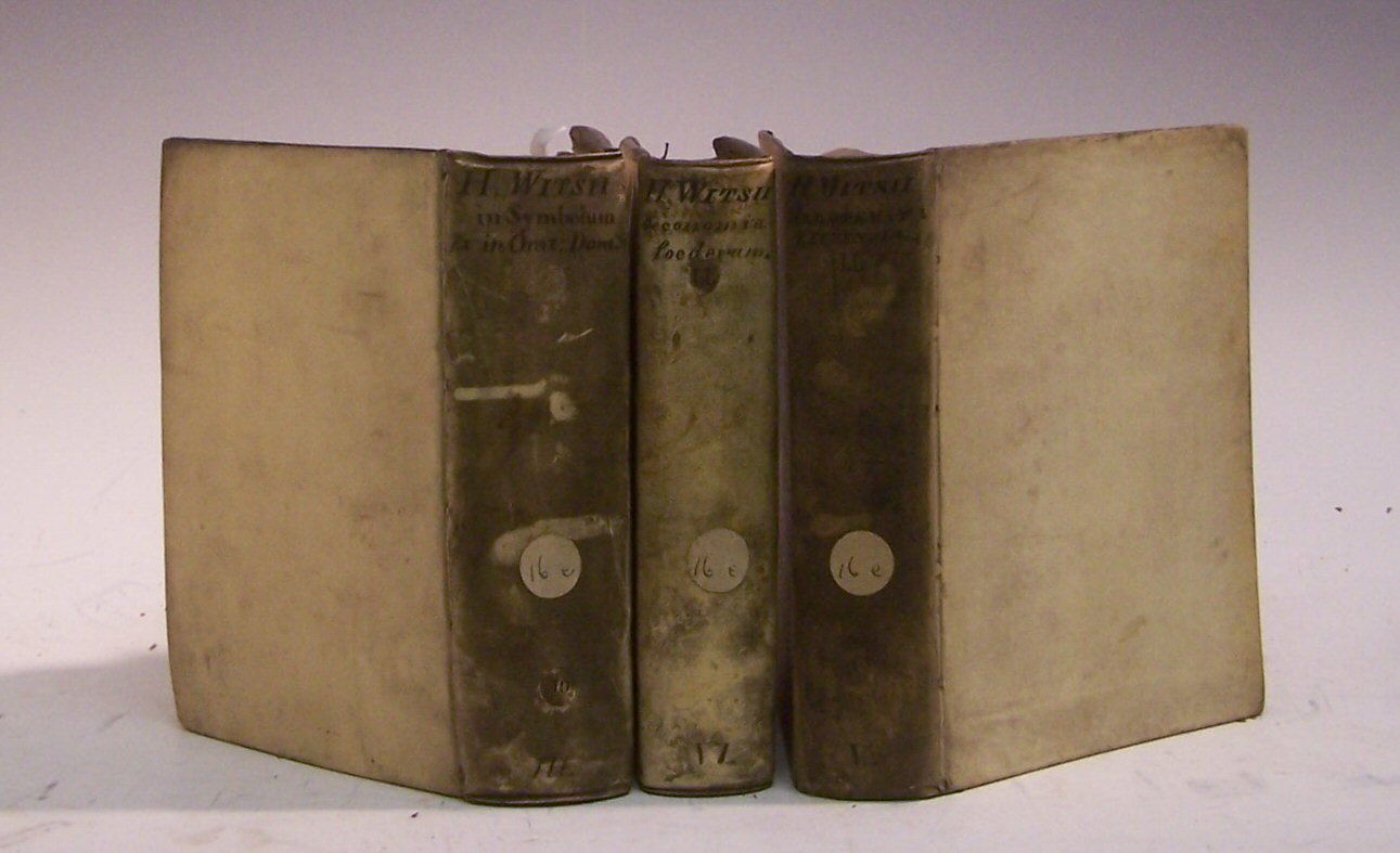 Meletemata Leidensia. Leiden: J. Luchtmans, 1703; De oeconomia foederum dei cum hominibus. Leeuwarden, 1685, additional engraved title; Exercitationes sacrae. Franeker: J. Gyselaer, 1681, Exercitationes in orationem dominicam. Franeker: J. Gyselaer, 1689; Aegyptica et Dekaphylon. Sive de Aegyptiacorum sacrorum cum Hebraicis collatione Amsterdam: G. Borst, 1696, second edition, additional engraved title; Miscellaneorum sacrorum. Amsterdam & The Hague: F. Halm, 1695-1700, 2 volumes, 4to, folding engraved plates, bound in six volumes, contemporary vellum; Minucius Felix, M. M. Minucii Felicis Octavius, cum integris omnium notis... Leiden: J. Maire, 1652, 4to, title with engraved vignette, contemporary calf, worn, cover detached (6)