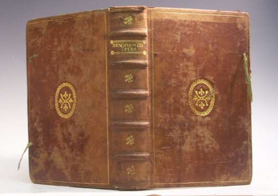 A fine folio edition of Xenophon with Greek text and Latin translation printed in double columns with copius notes and indexes found at the end. This is the second edition from Wechel's press with additional notes and a Greek index of words and phrases by Aemilius and Francis Portus. The binding may well have been for a French college or university.