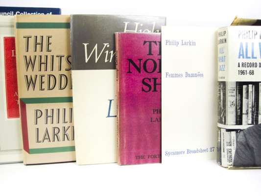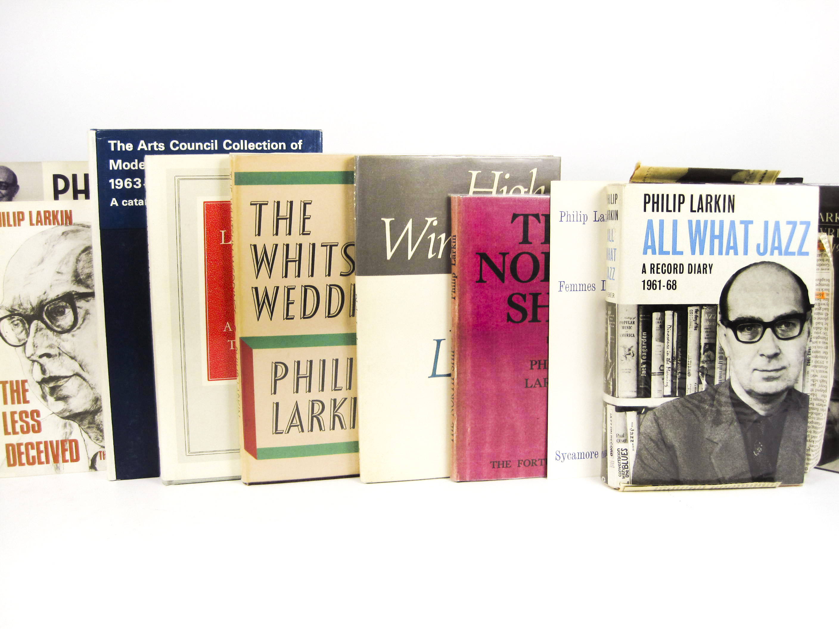 The North ship. Fortune Press, 1945. First edition, [one of 500 copies], photocopied dust-jacket; The Whitsun Weddings. First edition, 1964, dustwrapper, not price clipped; High Windows, 1974. First edition, dustwrapper, not price clipped; All what jazz. 1970. First edition, dustwrapper, not price clipped; Required writing. 1983; Collected poems. 1988; Selected letters. 1992; Motion, A. Philip Larkin. 1993; and cuttings, pamphlets & books relating to Larkin, including copies of About Larkin (quantity)