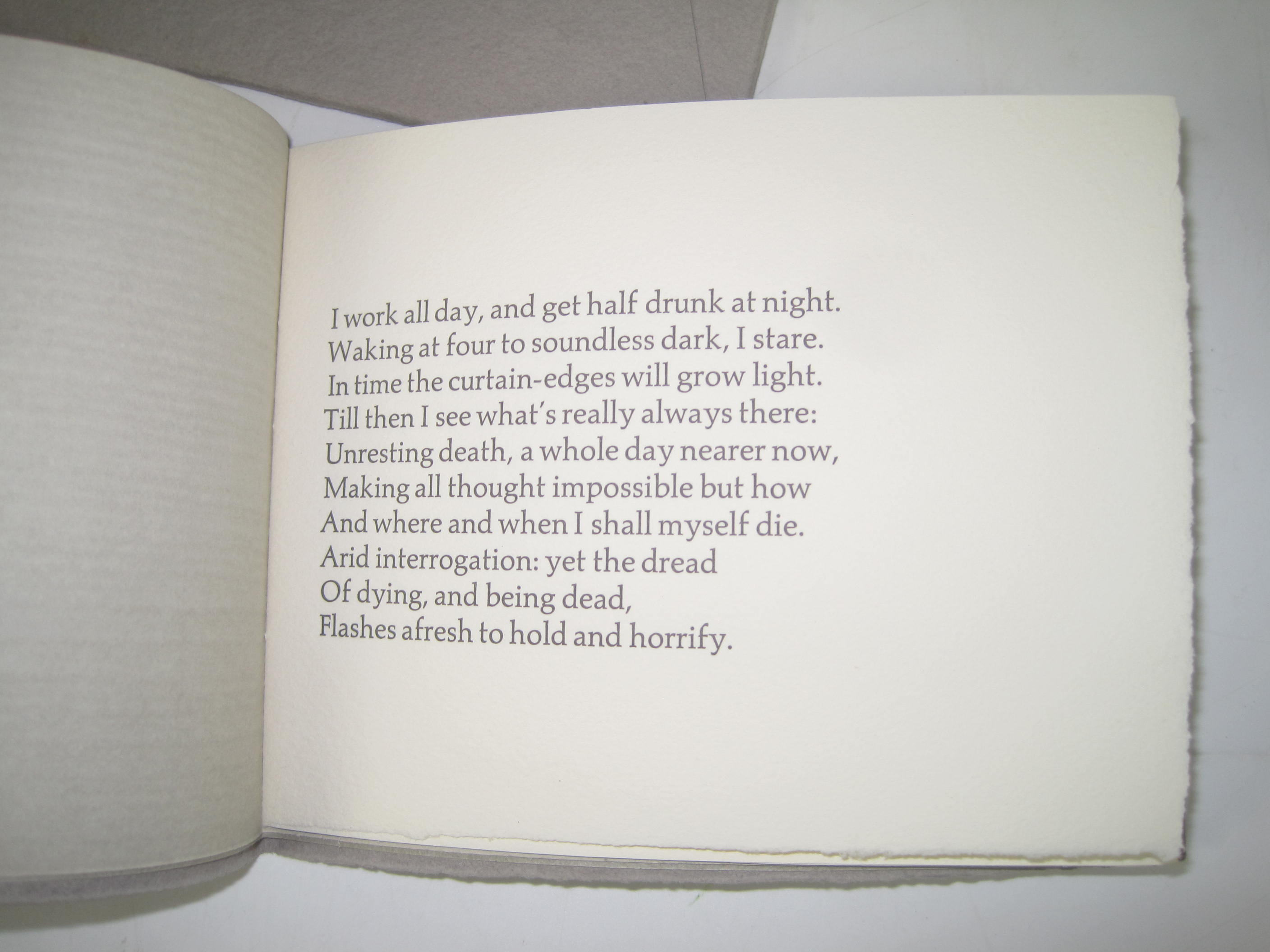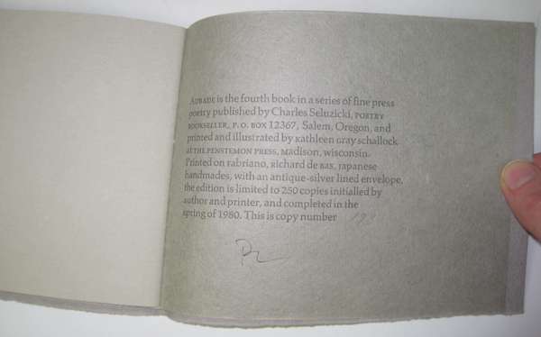 Aubade. Salem, Oregon: Charles Seluzicki, 1980. Number 193 of 250 copies initialled by the author and printer, on Fabriano, Richard de Bas, Japanese handmade paper, original wrappers, in silver-lined envelope