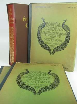 Formal gardens in England and Scotland. London: B.T. Batsford, [1902]. 3 volumes, folio, 125 plates including 37*, 58* and 93*, loose in original green pictorial portfolio cases; Chaucer, Geoffrey - William S. Peterson Facsimile of the Kelmscott Chaucer, after 1991. Folio, modern cloth gilt in slipcase (4)