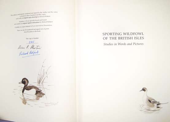 Sporting wildfowl of the British Isles. Holt: Fine Sporting Interests, 1999. 4to, number 245 of 350 copies with an original sepia drawing, signed by author and artist, plates, original blue half morocco gilt, t.e.g.