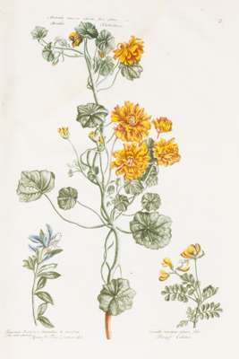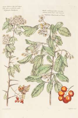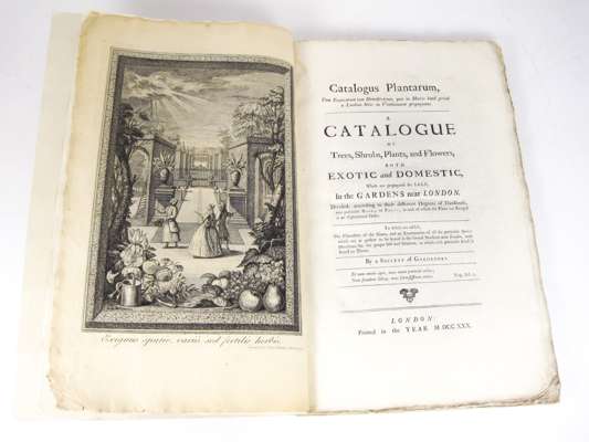 Note: "The Catalogus plantarum is notable as one of the earliest flower books to contain plates printed in colours. It is perhaps unique in that one third of its plates are so printed, in mezzotint from a single plate, while two thirds are engraved and handcoloured in the usual way...The seven 'mezzotints' are printed mainly in green and brown, with some small use of a third or fourth colour. Presumably all this was done through dabbing the colours on a single plate; but it should still be noted that Kirkall, the engraver, had previously experimented with woodblocks for laying on the second and third colours..." [Hunt, pp.136-7] This is the first of a planned three or four volume set, which would have been a broader catalogue of 'Trees, Shrubs, Plants and Flowers', however this was the only volume to be produced.