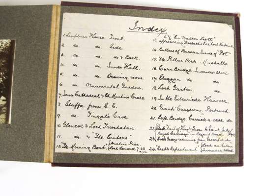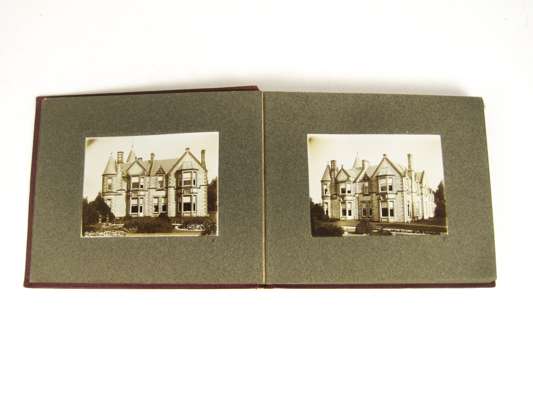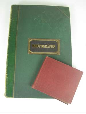 Photograph album containing c. 118 photographs, mainly between 10x14cm and 21x28.5cm, including 16 by George Washington Wilson and 38 by James Valentine, images cover Brussels, Luxembourg, the Moselle, Frankfurt, Heidelberg, Cologne, Scotland (Bute, Gairloch, Fingal's Cave, Inverness, Elgin), Berlin and Hannover, amongst other places; [AND] Small album of 24 photographs, mainly c.8x10cm, showing Linplum House, its residents and locations around Scotland (2)