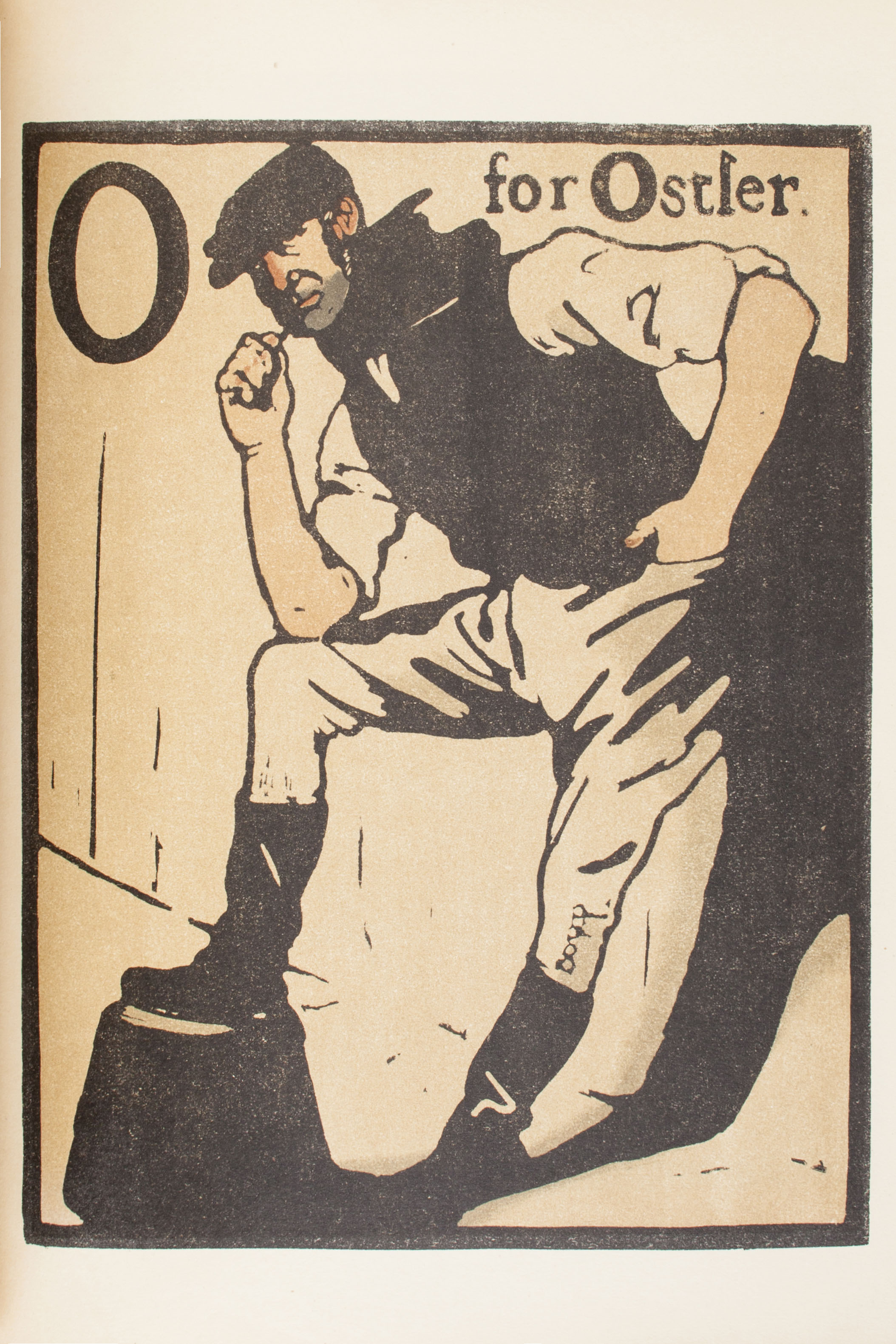 An Alphabet. London: W. Heinemann, 1899. 4to, third impression, 26 colour lithographed plates, publisher's pictorial boards, extremities slightly rubbed