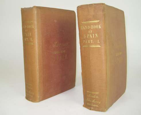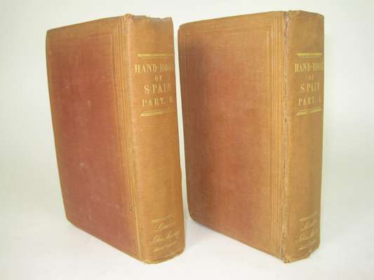 A hand-book for travellers in Spain. London: J. Murray, 1845. 2 volumes, 8vo, 2 folding maps, one in pocket at end, original cloth, faded, joints splitting, extremities slightly rubbed