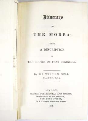 Itinerary of the Morea. London: Rodwell and Martin, 1817. 8vo, folding map, contemporary blind and gilt tooled calf, bookplates of Sefik E. Atabet