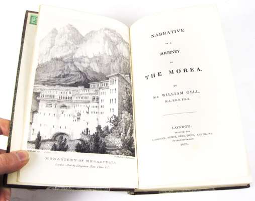 Narrative of a journey in the Morea. London Longman, Hurst, Rees, Orme, and Brown, 1823. First edition, 8vo, frontispiece, 8 engraved plates, 20th century half calf gilt, spine faded