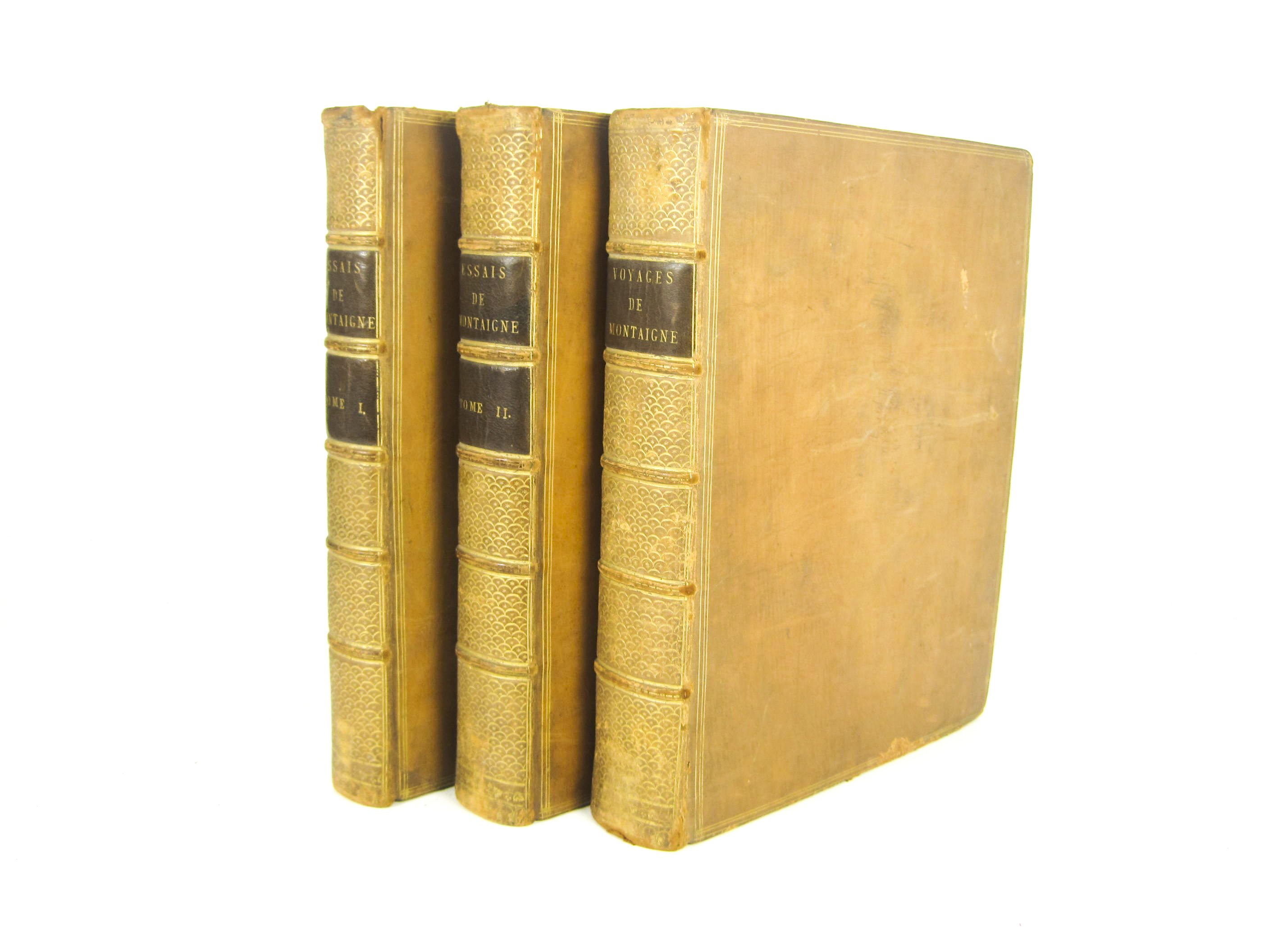 Journal du voyage... en Italie, par la Suisse & l'Allemagne, en 1580 & 1581. Rome & Paris: chez Le Jay, 1774. 4to, 1 volume collating: [4], liv, 416, portrait; [Idem] Les essais. London: J. Tonson & J. Watts, 1724. Volumes 1-2 only (of 3), 'new edition', 4to, portraits; uniform calf gilt, occasional spotting and offsetting, tear to corner of p.189 in volume 2 of essays (3)