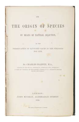 Note: On the Origin of Species by Charles Darwin is widely regarded as one of the most important books ever written. Indeed, there is scarcely an area of human endeavour that has not been impacted by Darwin’s theory, the terms Darwinism and Darwinian now an integral part of the modern lexicon. "The most important biological book ever written. [Freeman 373.] There is only one issue of the first edition, the text being identical in all copies. There are however very slight differences in the binding, this copy corresponding to variant "B."