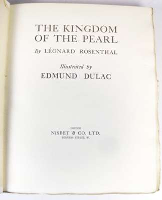 The Kingdom of the pearl. London: Nisbet & Co. Ltd., [1920]. 4to, number 17 of 100 copies signed by Edmund Dulac, 10 coloured plates by Dulac, original quarter vellum gilt