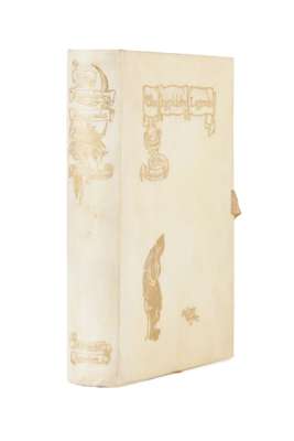 The Ingoldsby legends, mirth & marvels. London: J.M. Dent & Co., 1907. 4to, number 461 of 500 UK copies (50 copies also for sale in the USA), signed by Arthur Rackham, 24 mounted coloured plates, and 12 tinted plates by Rackham, plate at p.254 with offsetting? original vellum gilt, ties