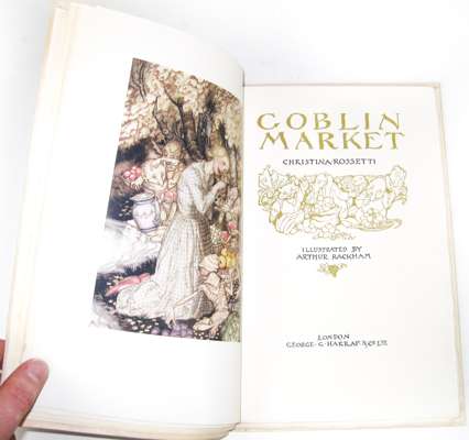 Goblin market. London: George G. Harrap & Co. Ltd., 1933. 8vo, number 306 of 410 copies signed by Arthur Rackham, 4 colour plates by Rackham, original limp vellum gilt, slipcase