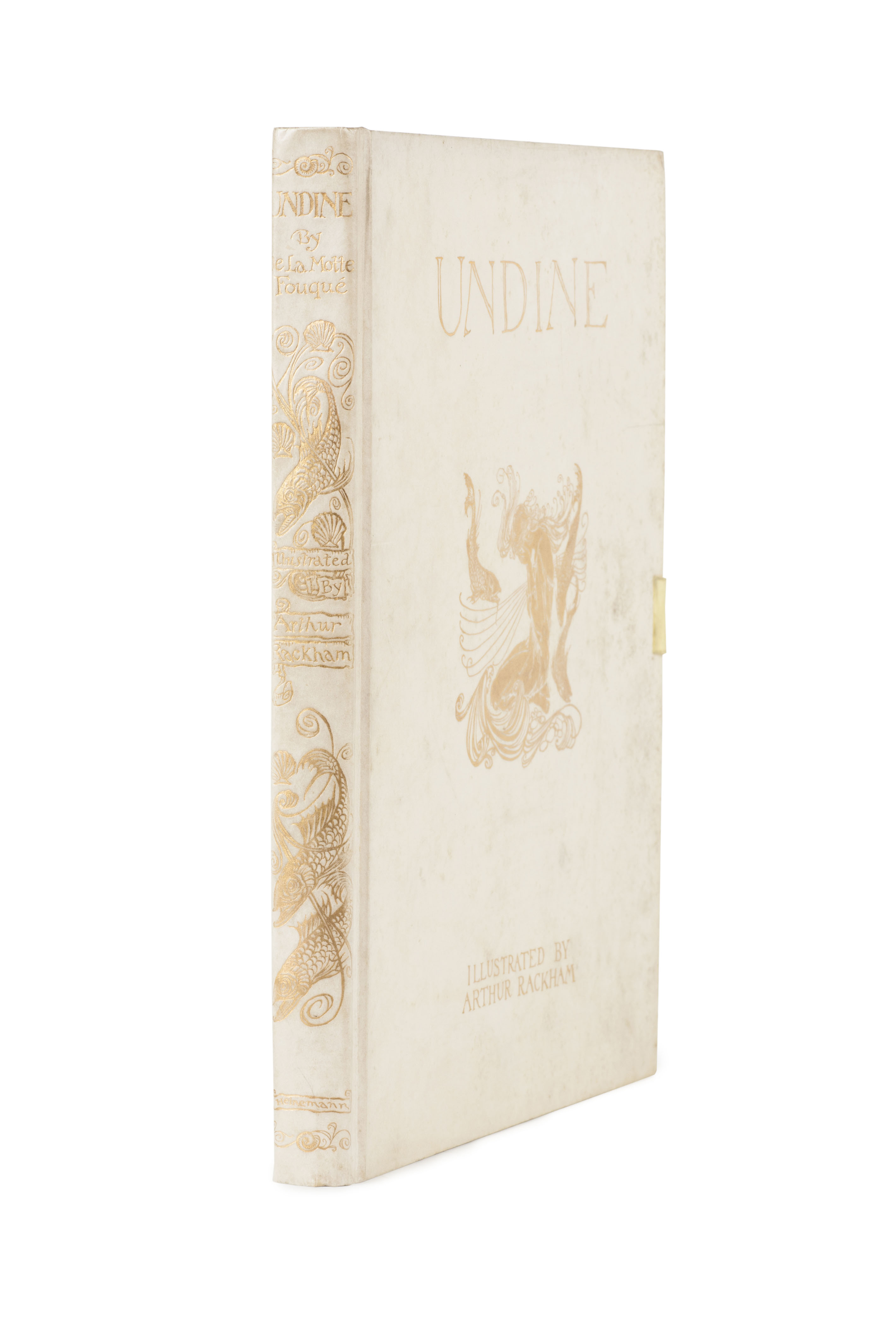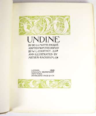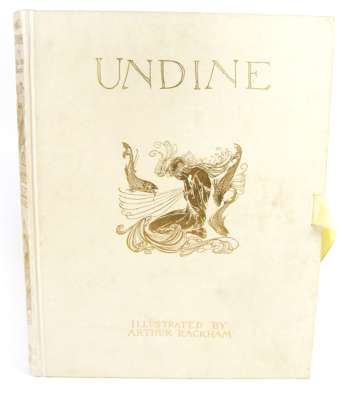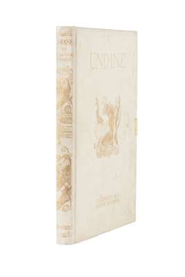 Undine. London: William Heinemann, 1909. 4to, number 54 of 1000 copies signed by Arthur Rackham, 15 tipped-in colour plates by Rackham, original vellum gilt, silk ties