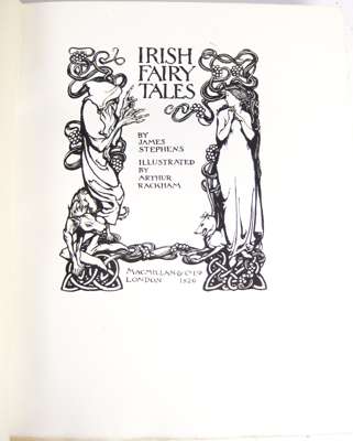 Irish fairy tales. London: MacMillan & Co. Ltd., 1920. 4to, one of 520 copies signed by Arthur Rackham, 16 colour plates by Rackham, original half vellum, dust-jacket, some pages uncut