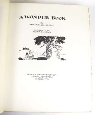 A wonder book. London: Hodder & Stoughton, 1922. 4to, number 457 of 600 copies signed by Rackham, 24 coloured plates by Rackham, original pictorial cream cloth gilt, t.e.g., others uncut, pictorial endpapers, armorial bookplate to front endpaper