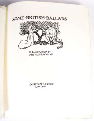 Some British ballads. London: Constable & Co. Ltd., [1919]. 4to, number 523 of 575 copies signed by Arthur Rackham, 16 colour plates by Arthur Rackham, original quarter vellum gilt