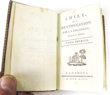 Memoires. "Londres", 1782-90. 10 vol.; Emile. "Londres" [Pierre Cazin], 1780-81; 4 vol., 8 plates after Moreau; La nouvelle Heloise. "Londres", 1781, 7 vol., 18mo (12 x 6.5cm.), contemporary red morocco, some spotting