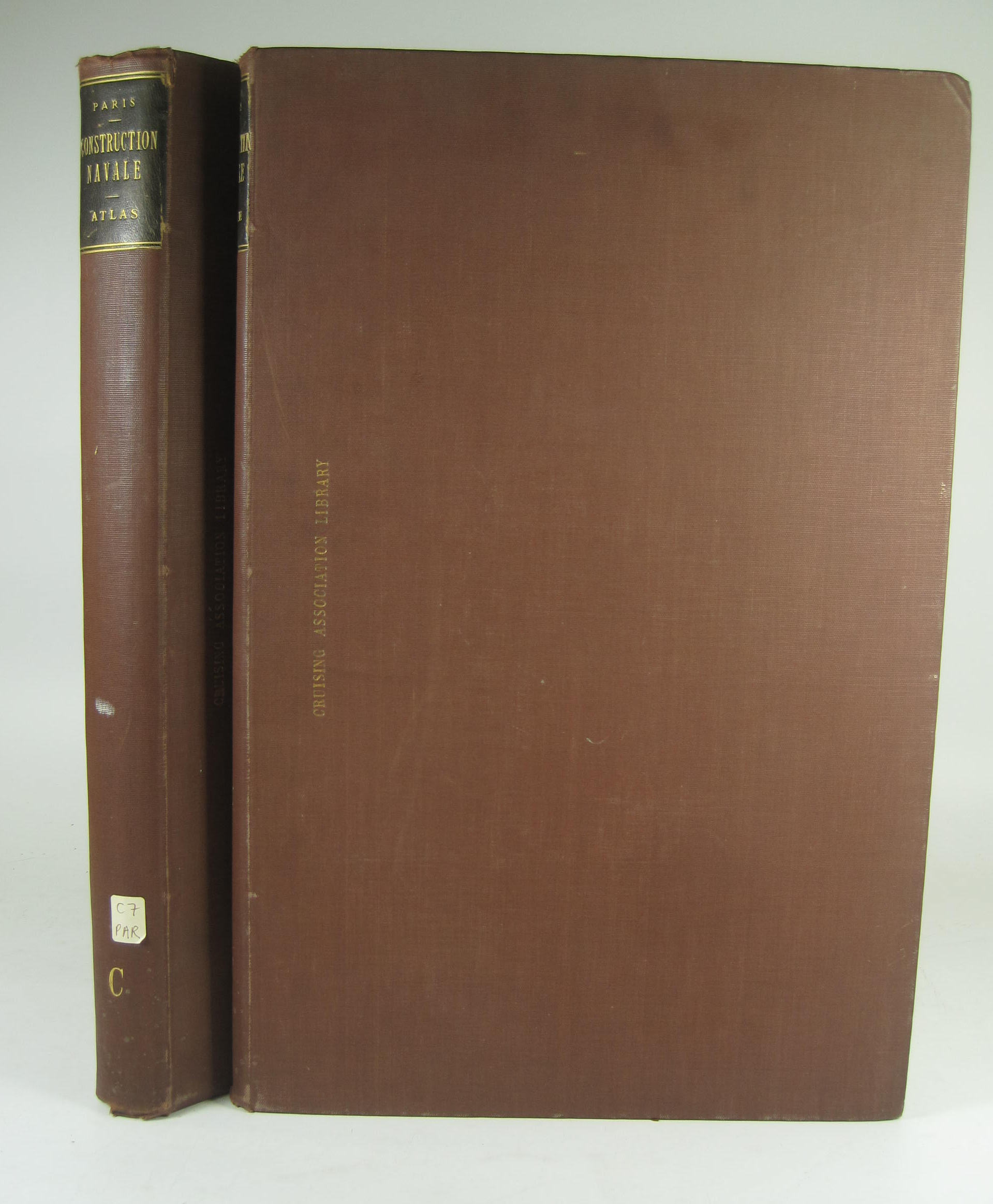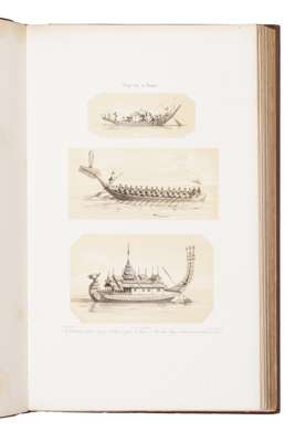 Essai sur la construction navale des peuples extra-européens, ou collection des navares et pirogues... Paris: Arthus Bertrand, [n.d., 1841?] 2 volumes, folio, 133 plates, including tinted lithographs, 13 sets of original yellow wrappers bound into text volume, later brown cloth, some severe browning to plates and text, some spotting, closed tear to plate 106, Cruising Association gilt and blind stamps and bookplates [Bibliothèque nationale de France, département Réserve des livres rares, V-169] (2)