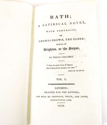 Bath, a satirical novel. London: for the Author, sold by Sherwood, Neely & Jones, 1818. First edition, 3 volumes, 12mo, contemporary half calf gilt, a fine set