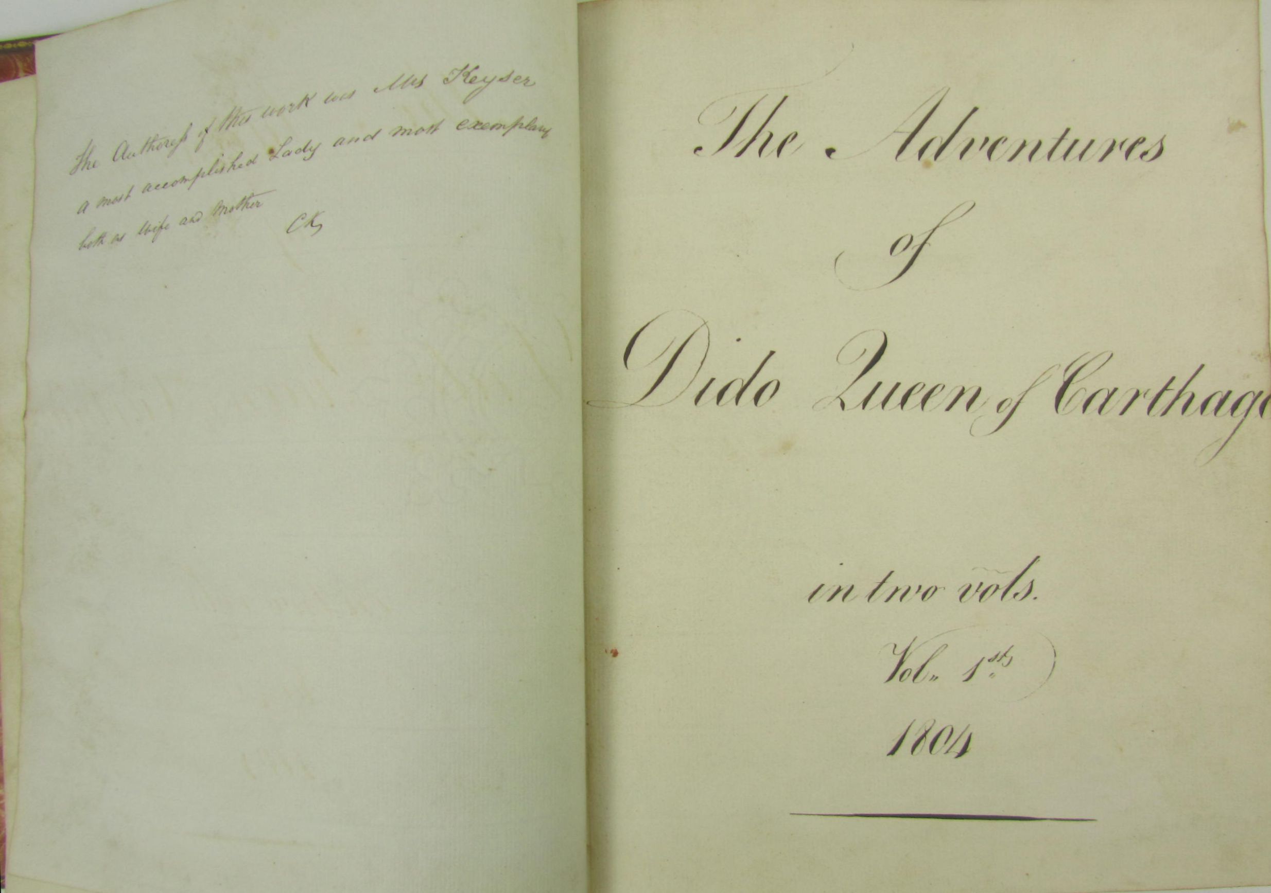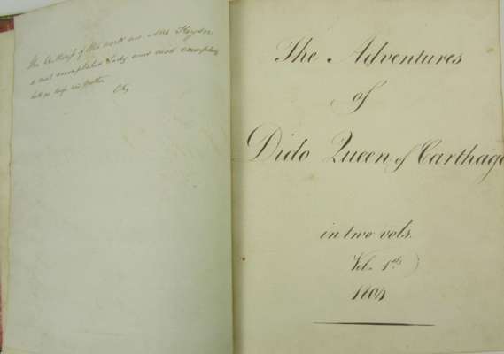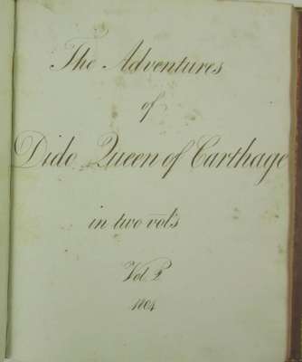 Manuscript novel: The Adventures of Dido Queen of Carthage, in two vols., 1804, 2 volumes in one, 4to, 214 + 198pp., contemporary diced calf, binding worn.