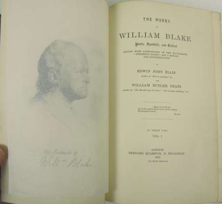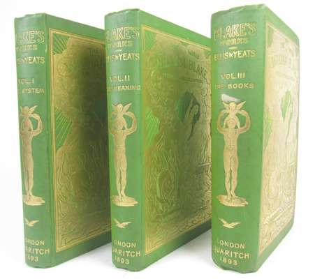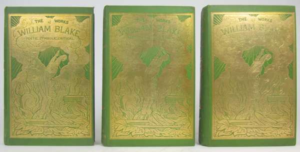 The works... poetic, symbolic and critical. London: Bernard Quaritch, 1893. 3 volumes, 8vo, edited by E.J. Ellis and W.B. Yeats, frontispieces, original pictorial green cloth gilt, t.e.g.