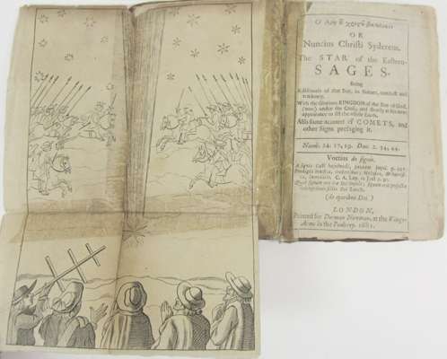 [Ho aster tou Christou basilikos] or Nuncius Christi sydereus. The star of the eastern-sages. London: Dorman Newman, 1681. Small 8vo, folding plate (repaired and re-attached with Selotape), errata slip pasted to blank, contemporary calf, some internal chipping and soiling, tear to lower corner of pp.39-40 with slight loss to text, covers rubbed and re-attached with Selotape [ESTC R18190, listing 2 copies in libraries in the British Isles, and 6 in North America]