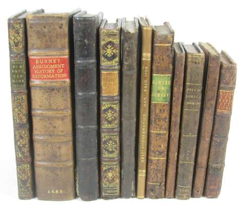 The abridgment of the history of the Reformation. London, 1683. Second edition, 8vo, frontispiece & 4 plates, contemporary calf, rebacked; An essay on the memory of the Queen. London: R. Chiswell, 1695. 8vo, frontispiece, contemporary calf; Reflections upon a pamphlet. London: R. Chiswell, 1696. 8vo, contemporary calf, rubbed; Reflections on Mr Varilla's history. Amsterdam, 1686. 12mo, contemporary calf; The Royal Martyr. London, 1689; Subjection for Conscience sake asserted. London, 1689; A sermon preached... before His Highness the Prince of Orange. London, 1689; A sermon preached before the House of Commons. London, 1689, A sermon preached at the coronation of William III and Mary II. London, 1689, 5 works in one volume, contemporary calf; A discourse of the pastoral care. London, 1692; Harmer, A. A specimen of some errors and defects. London: R. Taylor, 1693. 8vo, contemporary calf, rubbed; [Hay, John] Self-condemnation. Edinburgh: J. Vallange, 1703. 4to, modern half calf by Riviere lacks errata leaf; [Calder, Robert] The lawfullness and necessitie of observing the anniversary fasts and festivals of the Church. 1710. 8vo, contemporary calf; Anglesey, Earl of The privileges of the House of Lords and Commons. London: J. Butt, 1702. 12mo, 19th century calf, corner of title torn away; [Anon] The French Convert. Glasgow, 1797. 12mo, quarter calf; sold not subject to return (11)