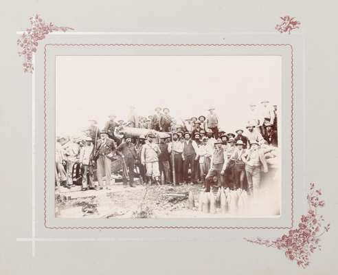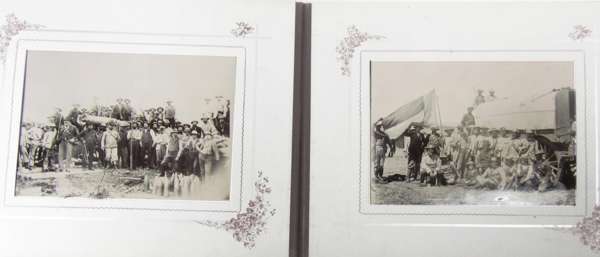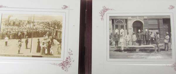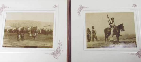 12 photographs, with captions in the negative, probably by Barnett & Co.; 6 by Stoel & Groote of Pretoria, with captions in the negative, 2 by Van Hoepen Photo Pretoria, 2 unattributed (one being of Baden Powell at Mafeking), all c. 14 x 19cm., original cloth album, worn, looting inscription on front endpaper; loosely inserted are four small photographs, one inscribed on verso "Quarter Guard, Pretoria"; and c. 60 autograph letters from Norman Robertson, 1st Gordon Highlanders, to his mother in Scotland, detailing activities and movements during Boer war, from many places in S. Africa including Pietersburg, Nystroom, East Fort Pretoria; Marabastad, "On trek", &c.