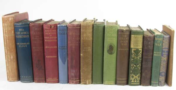 Emin Pasha and the rebellion at the equator, 1890. 8vo, red cloth, rubbed; Elliott, G.F. A naturalist in mid-Africa. A.D. Innes & Co, 1896. 8vo; Doyle, Sir Arthur Conan The great Boer War, 1900. Second impression, 8vo; Hutchinson, Thomas J. Impressions of Western Africa, 1858. 8vo, blue cloth gilt, dedication leaf in facsimile; Letcher, Owen Big game hunting in north-eastern Rhodesia. John Long, 1911. 8vo; Portall, Sir Gerald The British mission to Uganda. Edward Arnold, 1894. 8vo; Meikle, R.S & M.E. After big game..., [n.d.]; Shaw, Flora L. A tropical dependency..., 1906. 8vo; Eliot, Sir Charles The East Africa protectorate, 1905. 8vo; Francis Edwards Catalogue of books, pamphlets, views, maps, and transactions of societies relating to Africa and African islands, October 1902. 8vo, wrappers; and a large quantity of others, sold not subject to return (quantity)