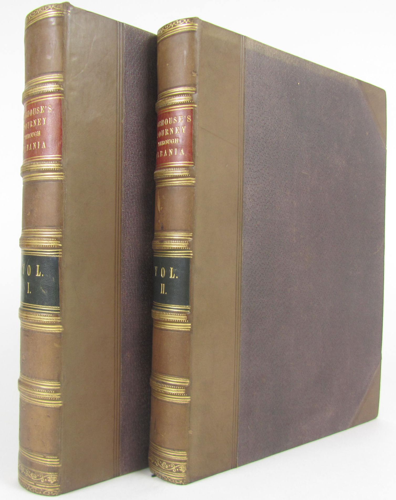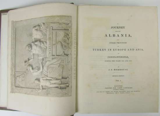 A journey through Albania. London: J. Cawthorn, [n.d.]. Second edition, 2 volumes, 4to, 2 folding maps, one map torn with loss of c.10 sq. cm., 21 (uncoloured) plates, 2 sheets engraved music, nineteenth century half calf, spines gilt, slightly spotted