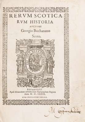 Rerum Scoticarum historia. Edinburgh: 1582. Folio, contemporary vellum [USTC 509496]