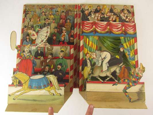 Note: Munich-born illustrator, Lothar Meggendorfer (1847-1925) created and published some 200 movable books. His Internationaler Zircus has been called the 'most stunning' of these titles.