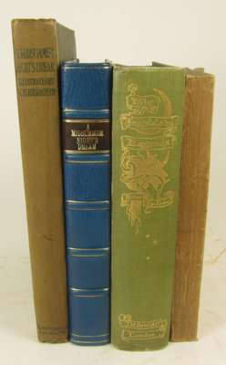The Ingoldsby legends. London: J.M. Dent & Co., 1907. 4to, plates, original green cloth gilt; Rackham, Arthur, illustrator - Shakespeare, William A midsummer night's dream. London: William Heinemann, 1908. 4to, 40 plates, rebound in blue half morocco gilt; Rackham, Arthur, illustrator - Goldsmith, Oliver The vicar of Wakefield. London: George G. Harrap & Company Limited, 1929. 4to, paper wrappers, plates, with compliments slip from the Riverside Press, Edinburgh; Heath-Robinson, W., illustrator - Shakespeare, William A midsummer night's dream. London: Constable & Co., 1914. 4to, 12 plates, original quarter buckram (4)