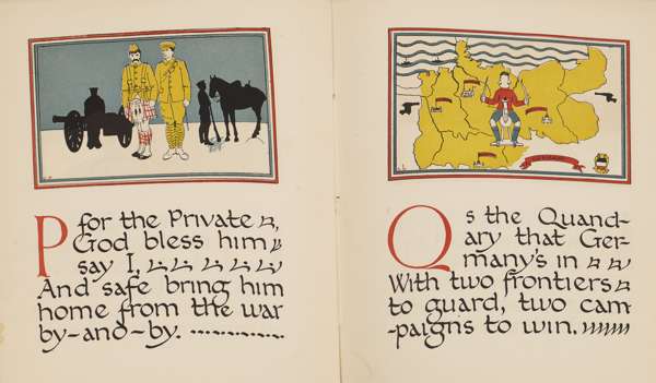 The child's ABC of the war. London: George Allen & Unwin, 1914. 4to, coloured illustrations by Stanley North, original pictorial boards