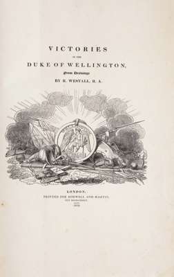 Victories of the Duke of Wellington, from 'Drawings By R. Westall, Rodwell and Martin' by Thomas Davidson, London, England, 1819. Folio, engraved title and 12 hand-coloured plates, some offsetting from coloured plates to opposite pages