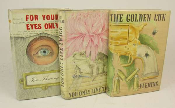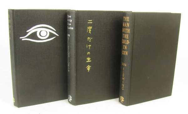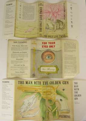 For your eyes only. London: Jonathan Cape, 1960. First edition, 8vo, original black cloth gilt with white eye motif to upper cover, dust-jacket price-clipped and a little worn and foxed to verso, ownership signature and bookseller's price to front free-endpaper, occasional internal marking and slight foxing; [Idem] You only live twice. London: Jonathan Cape, 1964. First edition, 8vo, original black cloth with title in silver to spine and gilt Chinese lettering to upper cover, a little wear and slight foxing to dust-jacket, bookseller's pencil notes to blurb, fore-edges foxed, shelf-lean; [Idem] The man with the golden gun. London: Jonathan Cape, 1965. First edition, 8vo, original black cloth gilt, price torn from dust-jacket, a little wear and a tear to dust-jacket, bookseller's price in pencil to endpaper, occasional slight internal soiling (3)