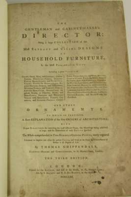 The gentleman and cabinet-maker's director. London: for the Author, 1762. Third edition, folio, engraved dedication leaf, 200 engraved plates, early nineteenth century diced calf, some spotting, soiling and dampstaining, occasional discolouration, a few small tears, mostly marginal, title edges slightly chipped, rebacked, extremities worn