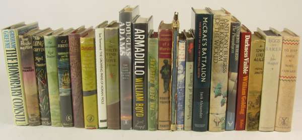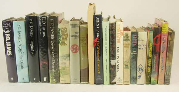 The Silmarillion. Boston, 1977. First US edition, 8vo, dust-jacket a little torn; King, Stephen The shining. New York, 1977. 8vo, dust-jacket price-clipped; Adams, Douglas The long dark tea-time of the soul. London, 1988. 8vo, dust-jacket; Pratchett, Terry Interesting times. London, 1994. 8vo, dust-jacket; and 6 others by Terry Pratchett (various editions); Pullman, Philip The amber spyglass. London, 2000. 8vo, dust-jacket; Milne, A.A. Winnie-the-Pooh. London, 1926. Second edition, 8vo, original green cloth gilt; James, P.D. The skull beneath the skin. London, 1982. 8vo, dust-jacket price-clipped; and 4 other works by P.D. James; Bates, H.E. The last bread. London, 1926. 8vo, wrappers bound in, foxed; Steinbeck, John The short reign of Pippin IV. London, [1957]. 8vo, first UK edition, dust jacket; Gray, Alasdair Poor things. London, 1992. 8vo, dust-jacket; New Naturalist - Perrins, Christopher British tits. London, 1979. 8vo, dust-jacket; New Naturalist - Buczacki, Stefan Garden natural history. London, 2007. 8vo, dust-jacket; and another New Naturalist work; Le Carré, John Tinker tailor soldier spy. London, 1974. 8vo, dust-jacket price-clipped; all first editions unless otherwise stated, and a quantity of others, sold not subject to return (65)